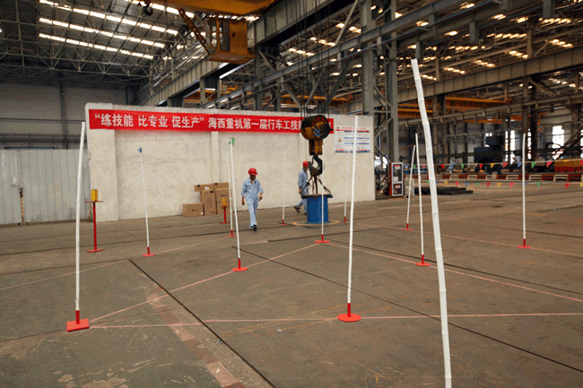 6月24日早上8點(diǎn),隨著行車一聲鳴笛,以“練技能、比專業(yè)、促生產(chǎn)”為主題的第一屆行車工技能比武大賽在下料車間正式開始,來自全公司范圍內(nèi)的46名行車工進(jìn)行了激烈地同臺(tái)競(jìng)技,經(jīng)過長(zhǎng)達(dá)5個(gè)小時(shí)的角逐,最終6名選手勝出,分獲冠軍、亞軍和季軍。公司副總經(jīng)理、工會(huì)主席代振華現(xiàn)場(chǎng)對(duì)獲獎(jiǎng)?wù)弑硎咀YR并為優(yōu)勝者頒發(fā)了獲獎(jiǎng)證書與獎(jiǎng)品。
