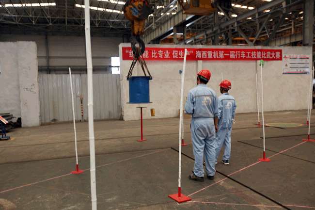 起重吊裝作業(yè)在公司諸多生產(chǎn)工藝環(huán)節(jié)當(dāng)中,是使用頻率較高、危險(xiǎn)性較高的作業(yè)工序,安全、平穩(wěn)、準(zhǔn)確、快速地吊裝作業(yè)是高效生產(chǎn)的關(guān)鍵因素。行車占公司起重吊裝設(shè)備超過70%,因此行車工為我司的重點(diǎn)生產(chǎn)崗位之一,其技能水平的高低,在很大程度上影響著產(chǎn)品的生產(chǎn)節(jié)奏,甚至對(duì)公司整體上的生產(chǎn)節(jié)拍都會(huì)產(chǎn)生重大影響。公司一貫主張“不僅要有好的裝備,還要把裝備維護(hù)、保養(yǎng)好,更要把設(shè)備功用足用好”,在此背景下,為檢驗(yàn)公司行車工的技能實(shí)力,提高行車工崗位意識(shí)和技能水平,促進(jìn)行車工自主學(xué)習(xí)、苦練技能,進(jìn)一步提升公司安全、高效的生產(chǎn)能力,由公司黨委主辦,工會(huì)承辦的行車工技能比武大賽應(yīng)運(yùn)而生。