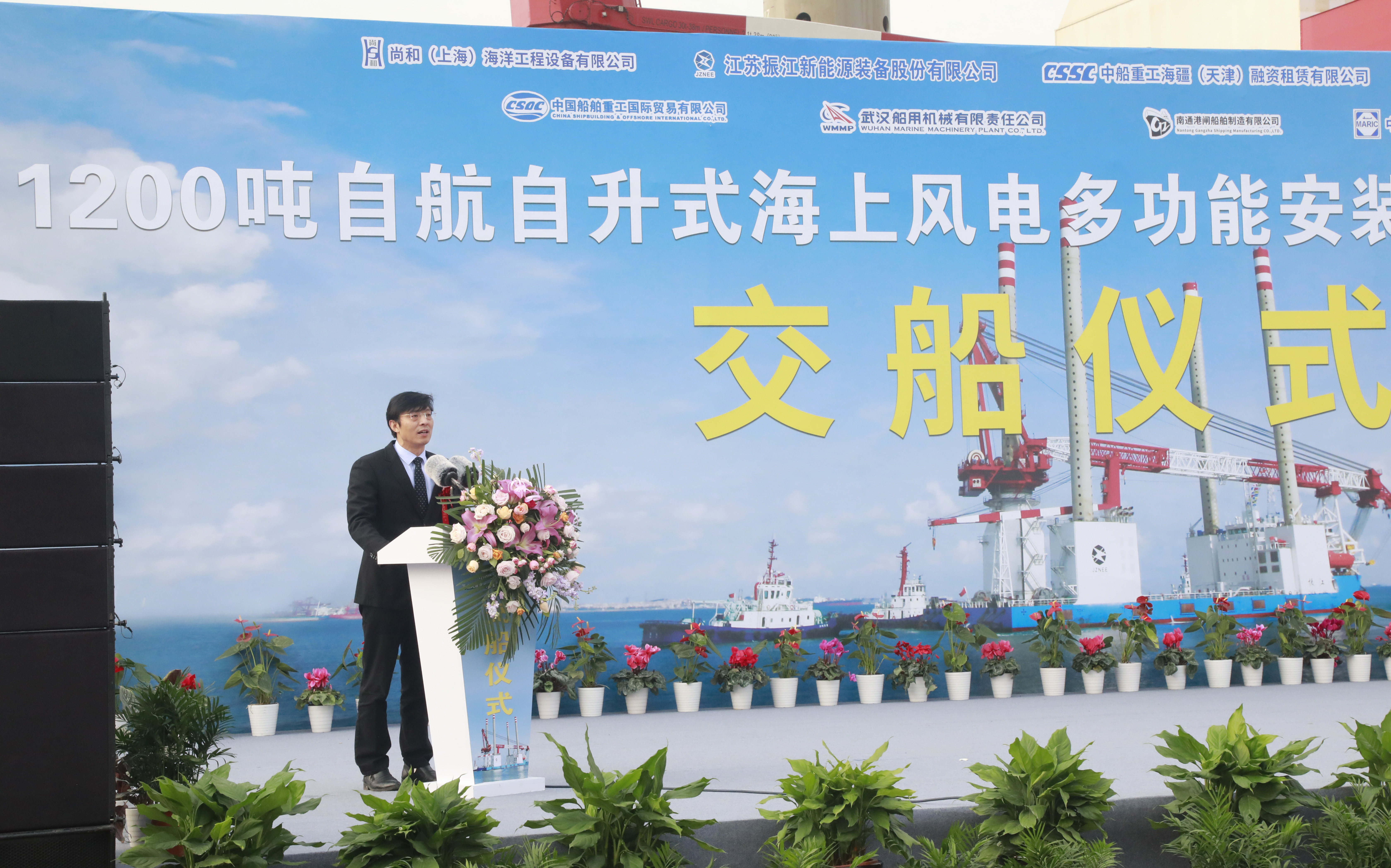 12月13日下午,國內(nèi)首座1200噸自航自升式風電安裝平臺——“振江”號交付儀式在武漢船機海西重機隆重舉行。尚和(上海)海洋工程裝備有限公司、江蘇振江新能源裝備股份有限公司、中信銀行、中國船舶及海洋工程設(shè)計研究院、中國船級社等單位領(lǐng)導和項目相關(guān)人員共同見證了這一歷史性時刻。