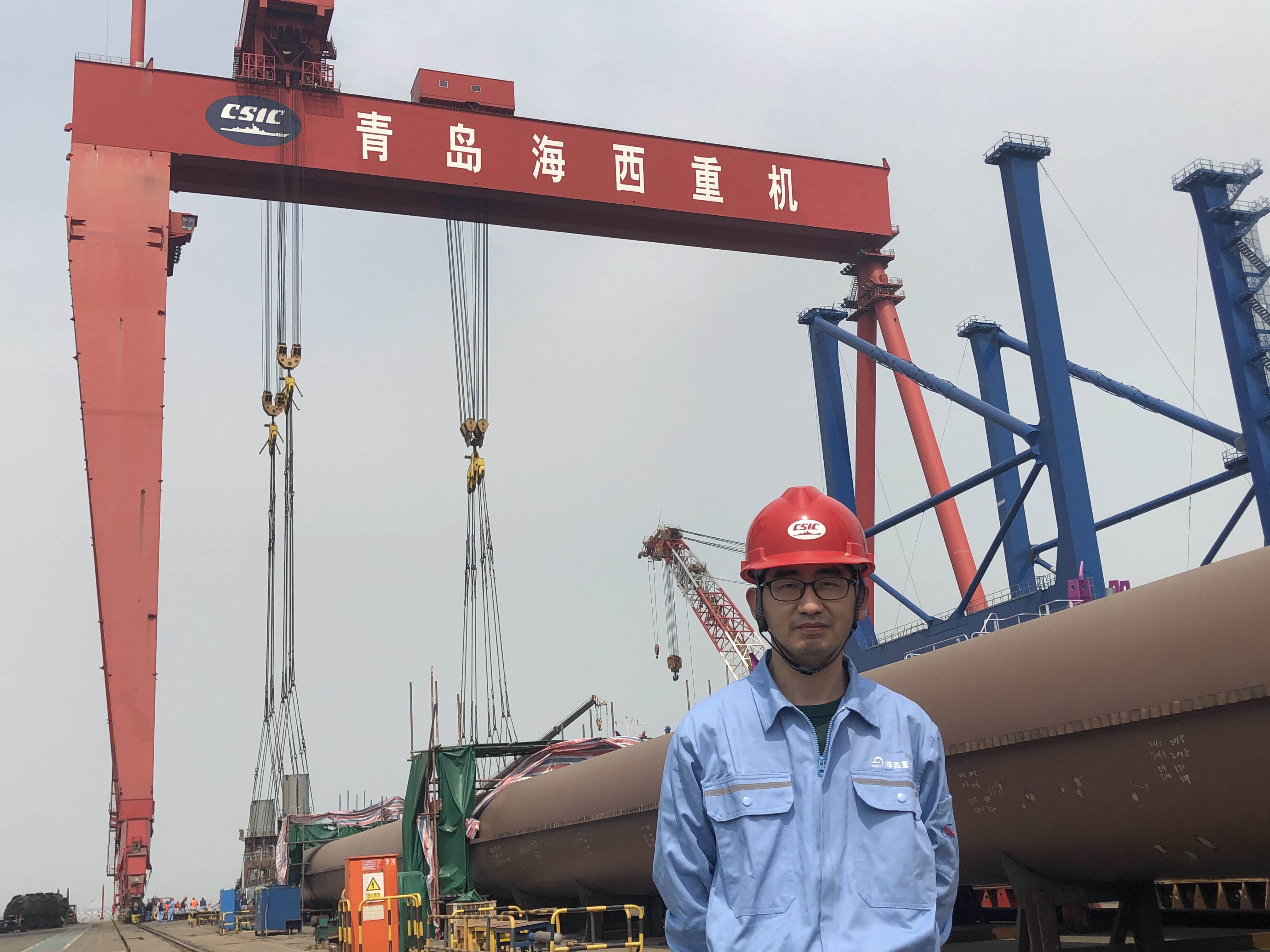 袁俊磊,海工平臺工程所結構專業(yè)設計員,一級資深工程師。自F3項目以來,他共負責了13座海工平臺的樁腿生產設計和工藝工作,見證了我司海工事業(yè)萌芽、發(fā)展、壯大的輝煌過程。每次見到平臺順利完成升降試驗時,他都會忍不住興奮地告訴朋友們:“看!這是我做的樁腿!”