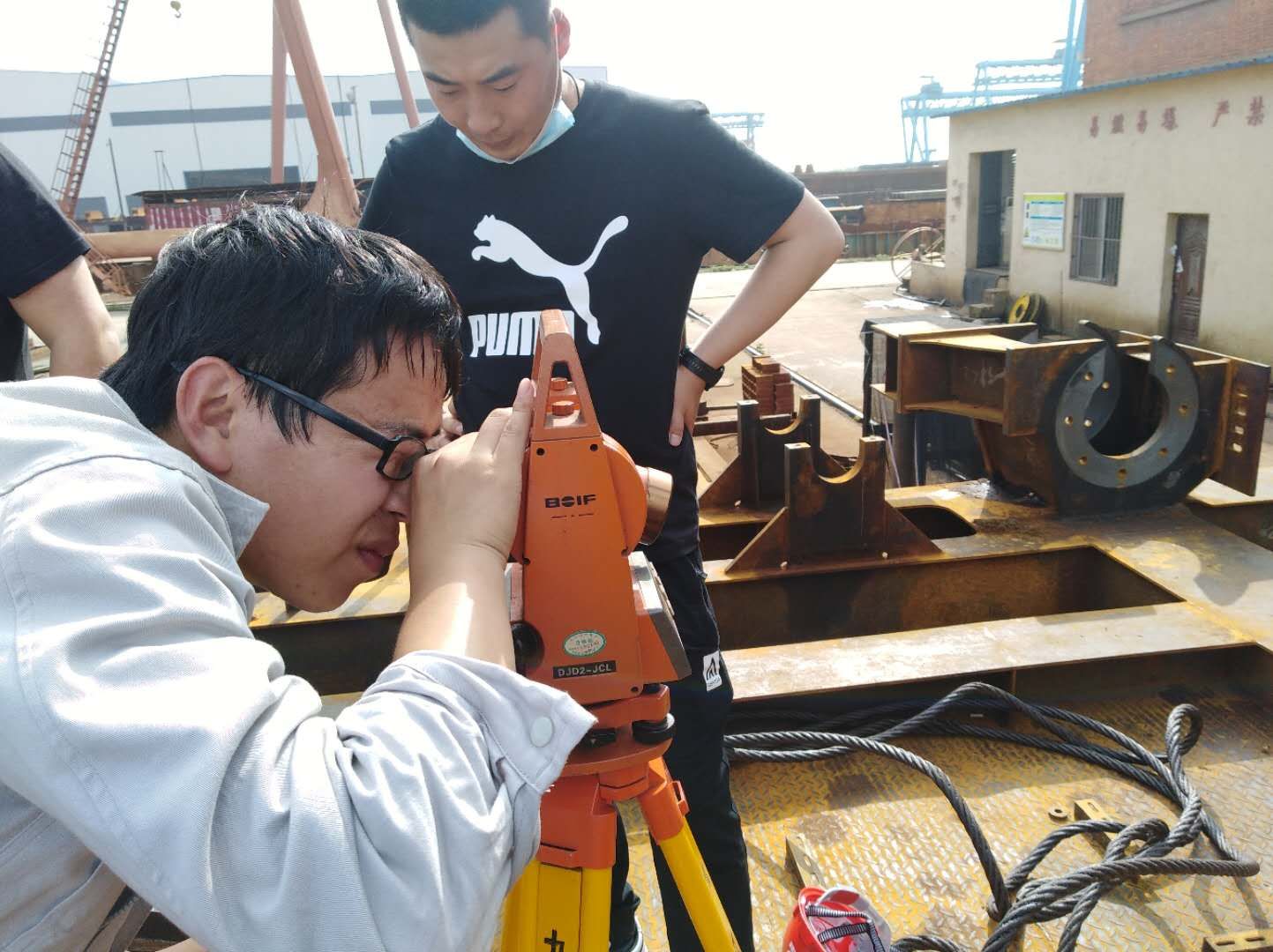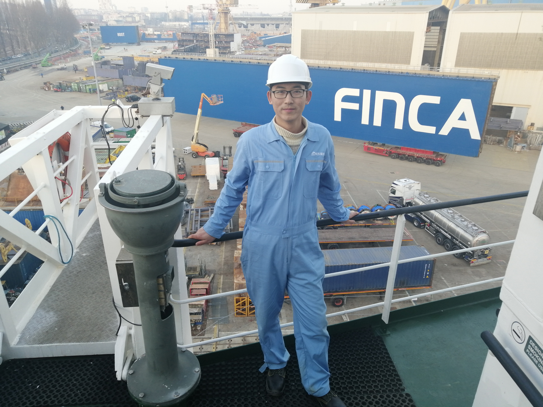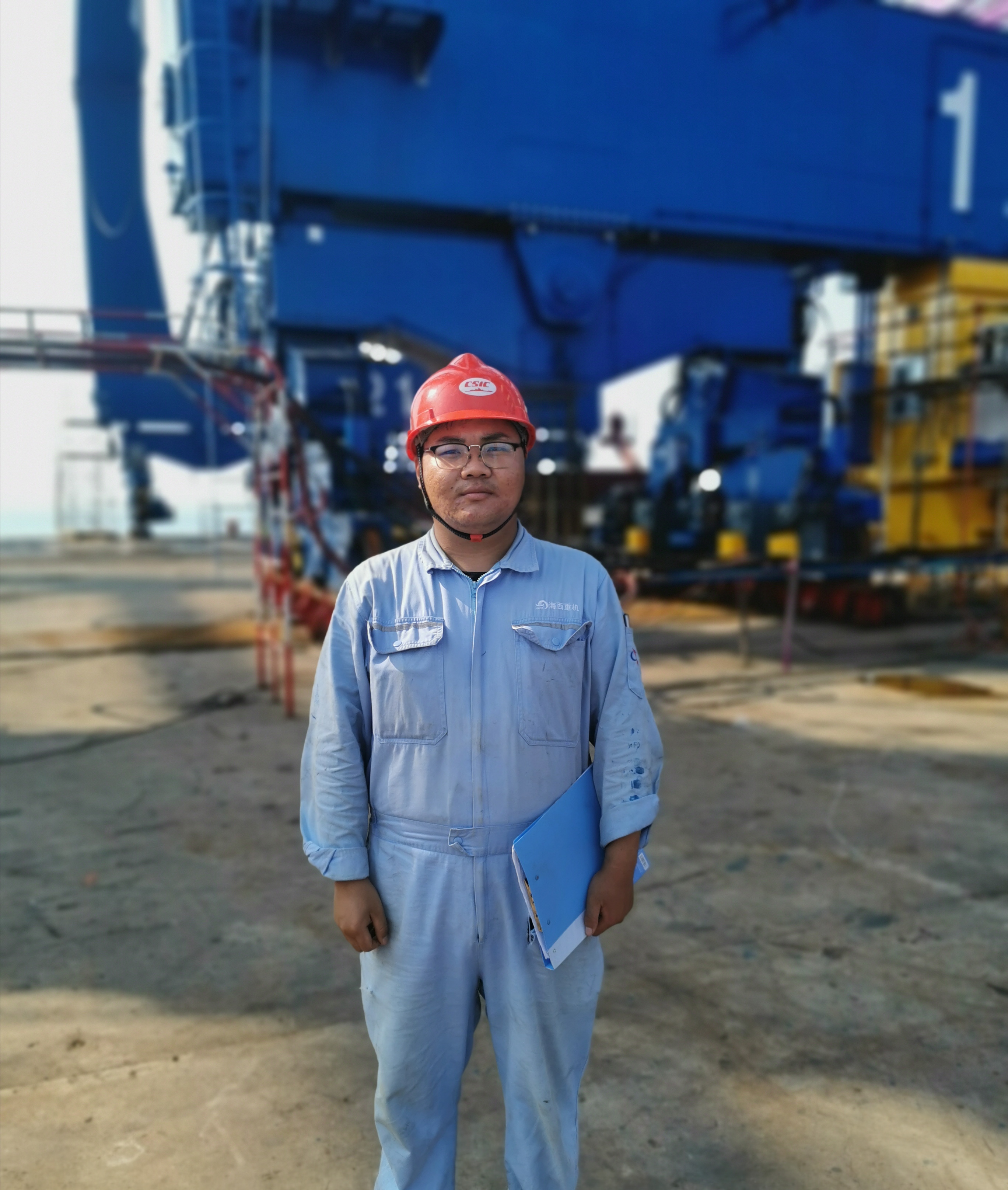 “我先后前往紅光碼頭總裝現(xiàn)場以及九橋鋼結(jié)構(gòu)制作現(xiàn)場,幾乎每天都有雨,現(xiàn)場施工壓力大,經(jīng)常要冒雨趕工,在雨中工作已經(jīng)成為常態(tài),哪怕渾身濕透也要繼續(xù)。通過與施工隊溝通,在師傅牟壽堂的指導(dǎo)下,清點(diǎn)現(xiàn)場物資,不斷解決現(xiàn)場技術(shù)問題,加深了對整機(jī)結(jié)構(gòu)和裝配的理解。現(xiàn)場碼頭吊裝需要使用浮吊,浮吊方案的編制十分復(fù)雜,不僅僅要考慮吊高、幅度與載重,還要考慮水位、吊裝角度、臂架干涉等一系列的問題,為了把參數(shù)計算準(zhǔn)確,經(jīng)常加班加點(diǎn),還好努力就有收獲,現(xiàn)在對吊裝作業(yè)的理解更深了。”劉镕旗在感嘆自己的成長,感恩于他的付出,畢竟無論是小青年還是老青年,這片藍(lán)天是靠大家共同撐起的。