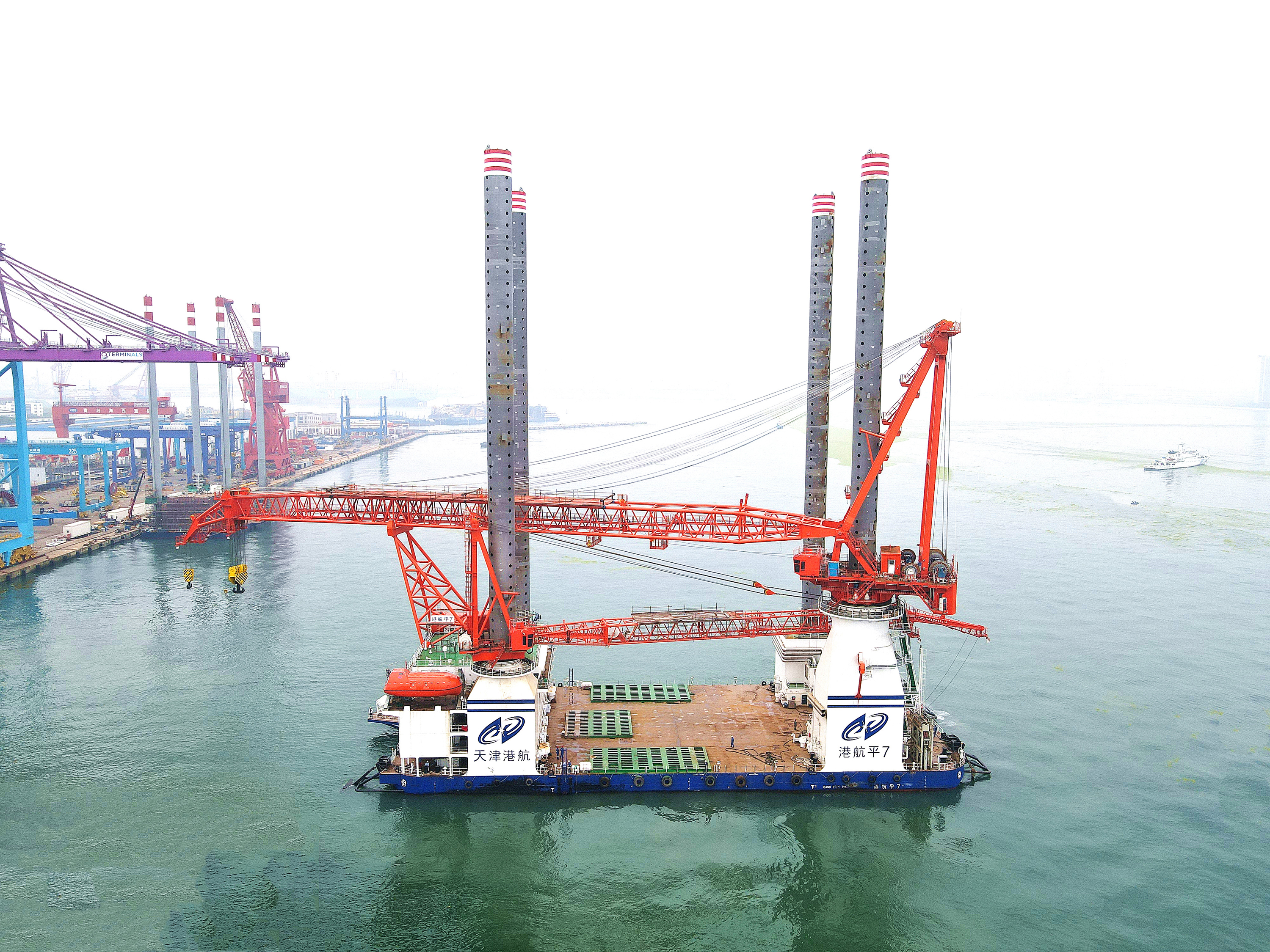 “港航平7”正式服役后,可與1200T全回轉(zhuǎn)自升式海上平臺(tái)——“港航平9”、5000噸風(fēng)電工藝駁船——“港航駁5”、世界最大打擊能量MHU3500S液壓沖擊錘等船機(jī)設(shè)備構(gòu)建更加完備的風(fēng)電施工專業(yè)設(shè)備體系,將有效緩解海上風(fēng)電施工設(shè)備緊張壓力,提升海上風(fēng)電規(guī)模化作業(yè)能力,對(duì)貫徹落實(shí)黨中央、國(guó)務(wù)院關(guān)于碳達(dá)峰、碳中和重大決策部署,確保“十四五”開(kāi)好局、起好步,促進(jìn)國(guó)家綠色能源的發(fā)展貢獻(xiàn)力量。