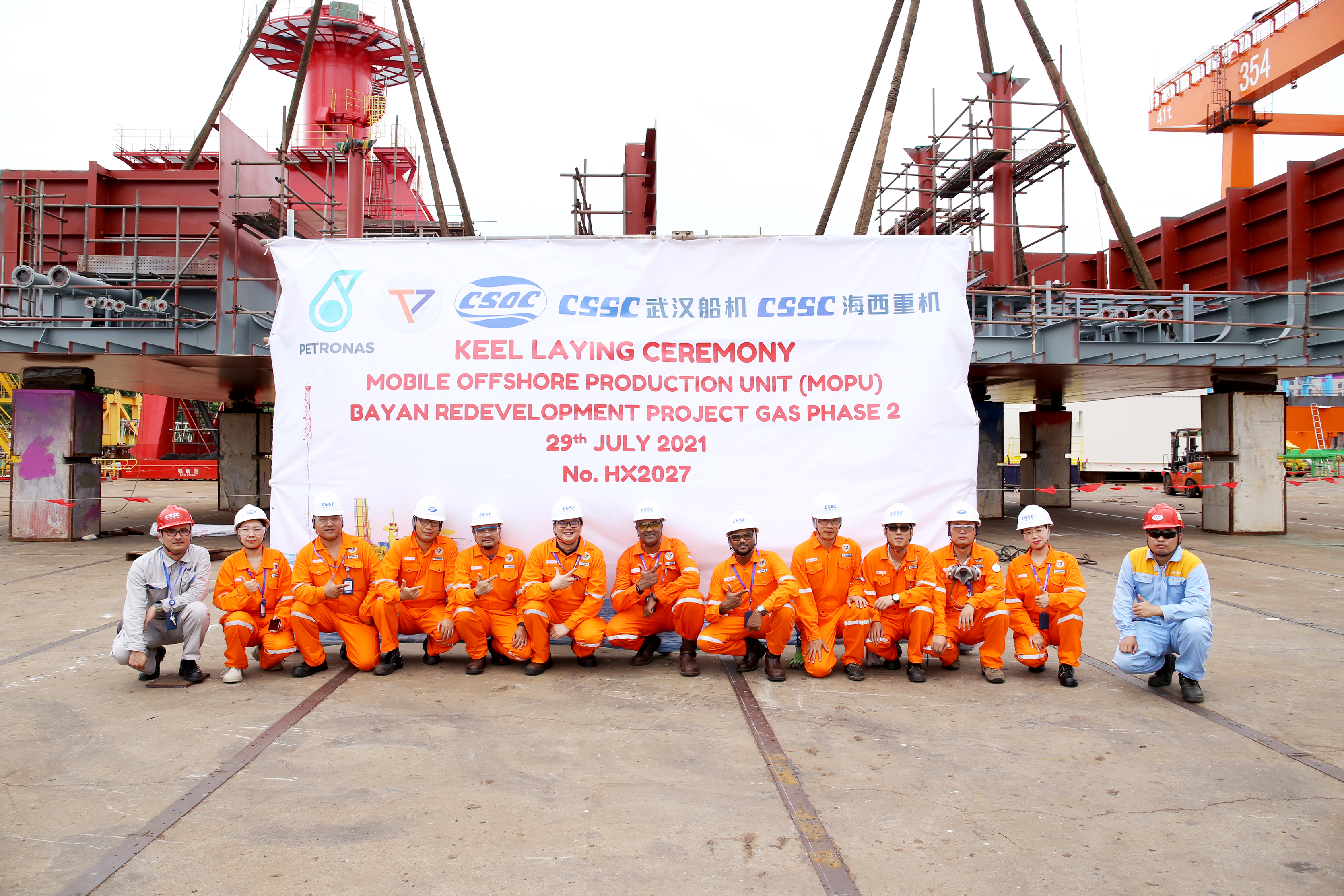 7月29日,馬來西亞可移動(dòng)自升式生產(chǎn)(天然氣)平臺(tái)(簡稱MOPU)鋪龍骨儀式順利舉行,標(biāo)志著該平臺(tái)正式進(jìn)入船臺(tái)搭載階段。馬來西亞國家石油公司、T7 Global公司、ABS、中國船貿(mào)、中國船舶集團(tuán)旗下武漢船機(jī)海西重機(jī)各方代表通過現(xiàn)場(chǎng)會(huì)和遠(yuǎn)程視頻直播的方式參加了該儀式。