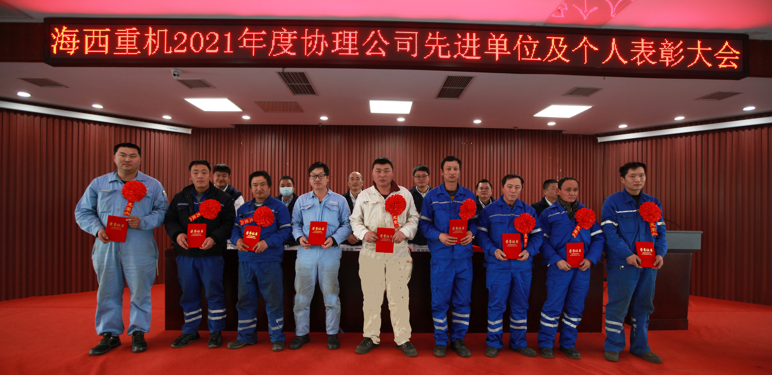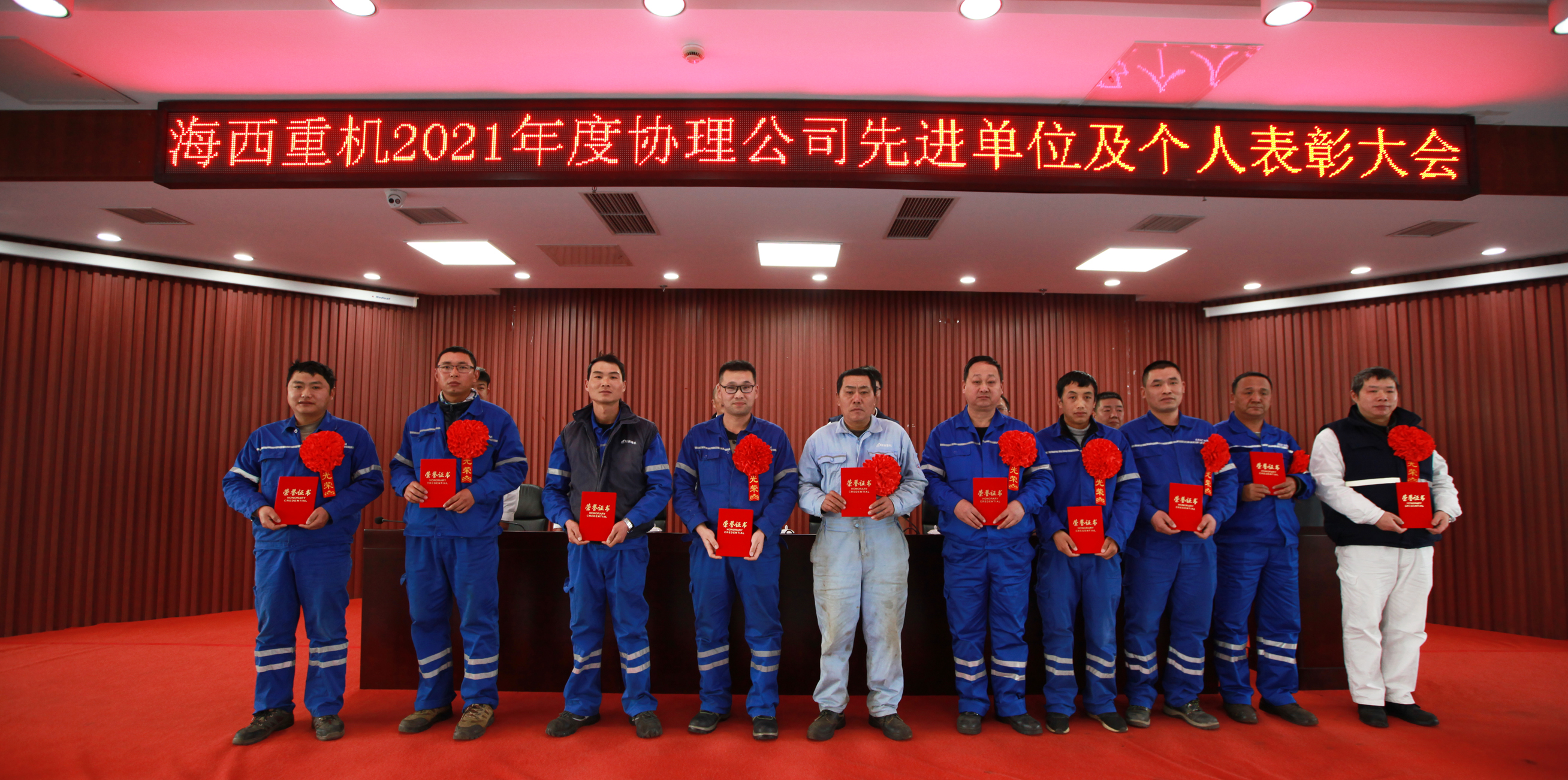 1月21日,中國船舶集團(tuán)旗下武漢船機(jī)海西重機(jī)公司2021年度優(yōu)秀協(xié)理公司及其優(yōu)秀技能人員、先進(jìn)個人表彰大會在901會議室隆重召開。公司黨委副書記、總經(jīng)理蔣新標(biāo),黨委副書記、紀(jì)委書記、工會主席朱聲凱,副總經(jīng)理代振華、楊少波、韓燕驍、謝宛朋出席會議,公司各部門負(fù)責(zé)人、各協(xié)理公司代表、先進(jìn)個人等120余人參加了表彰大會。
