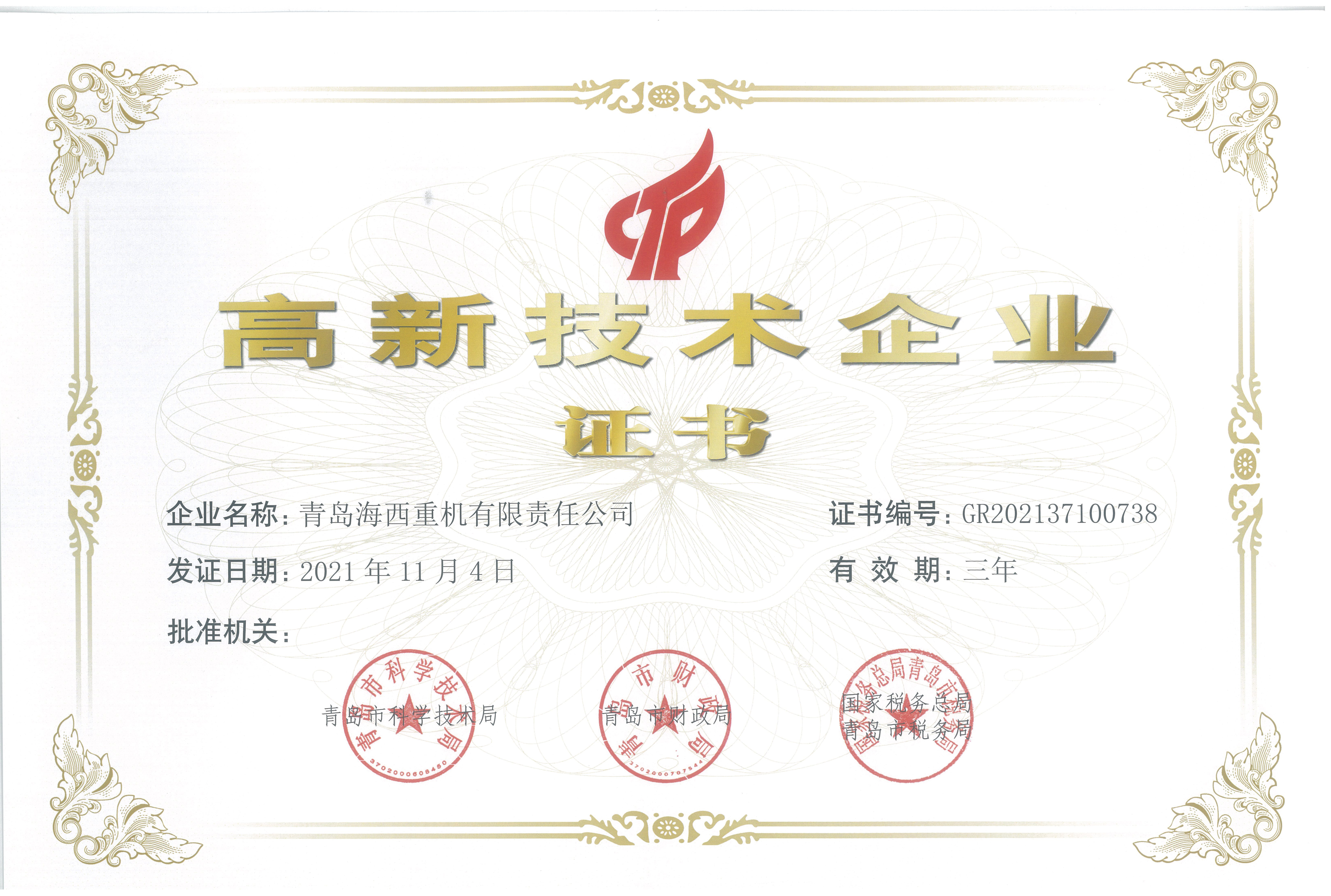 成功通過高新技術(shù)企業(yè)認定,對于提高市場經(jīng)營競爭力,提升企業(yè)品牌影響力具有重要作用,是公司實力和能力的體現(xiàn)。多年來,海西重機一直堅持突出技術(shù)引領(lǐng)戰(zhàn)略,強化技術(shù)創(chuàng)新,以技術(shù)創(chuàng)新帶動高質(zhì)量發(fā)展為重點,取得了較好成績。公司獲得了山東省首臺套技術(shù)裝備3項、山東精品裝備產(chǎn)品2項、山東創(chuàng)新工業(yè)產(chǎn)品1項、集團公司科技獎勵6項,青島市科技獎1項,科技成果鑒定11項,西海岸區(qū)級人才2人……