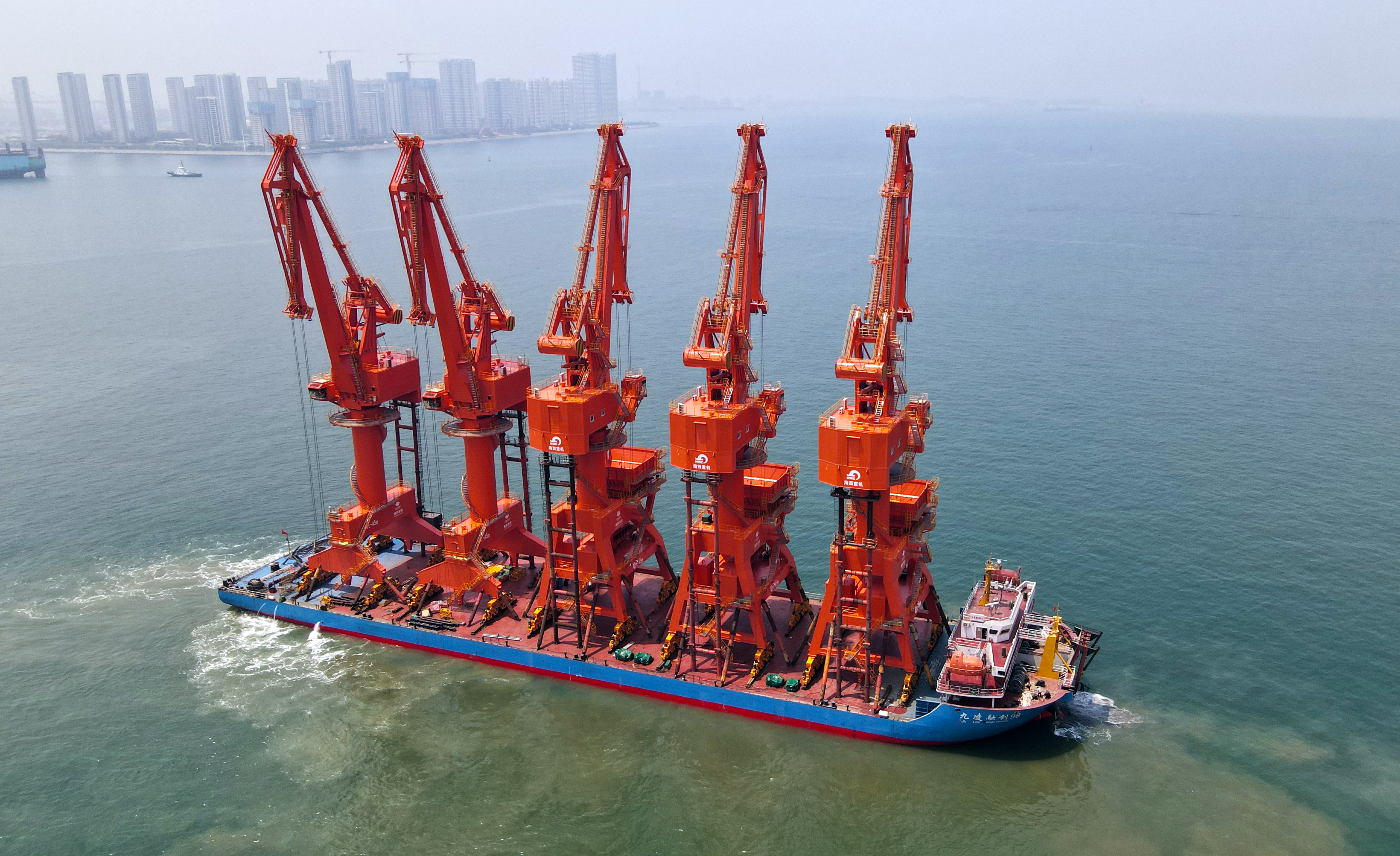 5月21日,中國船舶集團(tuán)旗下武漢船機(jī)海西重機(jī)公司為中交一航局黃驊港打造的5臺門機(jī)順利發(fā)運(yùn)。該項(xiàng)目由5臺40T-45M四連桿帶斗門座式起重機(jī)和5臺50T-45M四連桿門座式起重機(jī)組成,后5臺機(jī)也將于近期發(fā)運(yùn)。