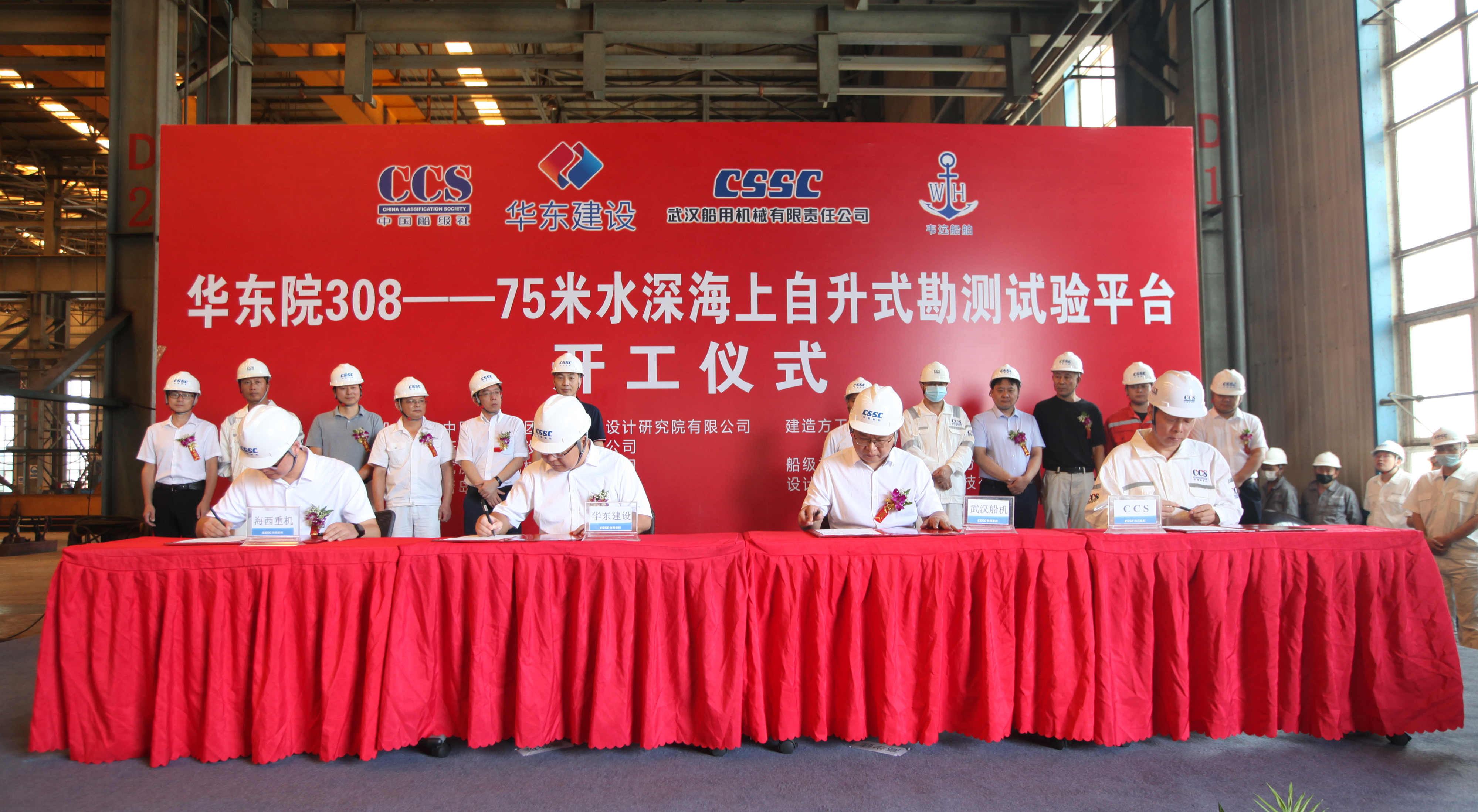 8月26日,中國船舶集團旗下武漢船機海西重機公司承建的華東院308——75米水深海上自升式勘測試驗平臺順利開工。浙江華東建設(shè)工程有限公司、中國船級社青島分社、杭州逸秀船舶技術(shù)服務(wù)有限公司、上海韋迒船舶科技有限公司、中國船舶工業(yè)貿(mào)易有限公司、武漢船用機械有限責任公司、青島海西重機有限責任公司代表出席儀式。