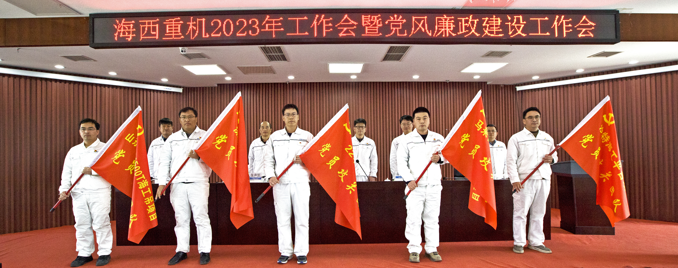 為將黨建工作優(yōu)勢(shì)轉(zhuǎn)化生產(chǎn)經(jīng)營工作優(yōu)勢(shì),充分釋放黨建工作“紅利”,進(jìn)一步推動(dòng)黨建工作與生產(chǎn)經(jīng)營工作深度融合,針對(duì)2023年生產(chǎn)任務(wù)繁忙,會(huì)上還針對(duì)山東海洋1500T風(fēng)電安裝平臺(tái)1500t起重機(jī)項(xiàng)目、深圳大鏟灣項(xiàng)目、550T門機(jī)項(xiàng)目、馬來西亞古晉港2臺(tái)岸橋、沙特海工輔助生活平臺(tái)等5個(gè)重難點(diǎn)項(xiàng)目成立黨員攻關(guān)團(tuán)隊(duì),并開展授旗儀式,確保各項(xiàng)任務(wù)保質(zhì)按期完成。