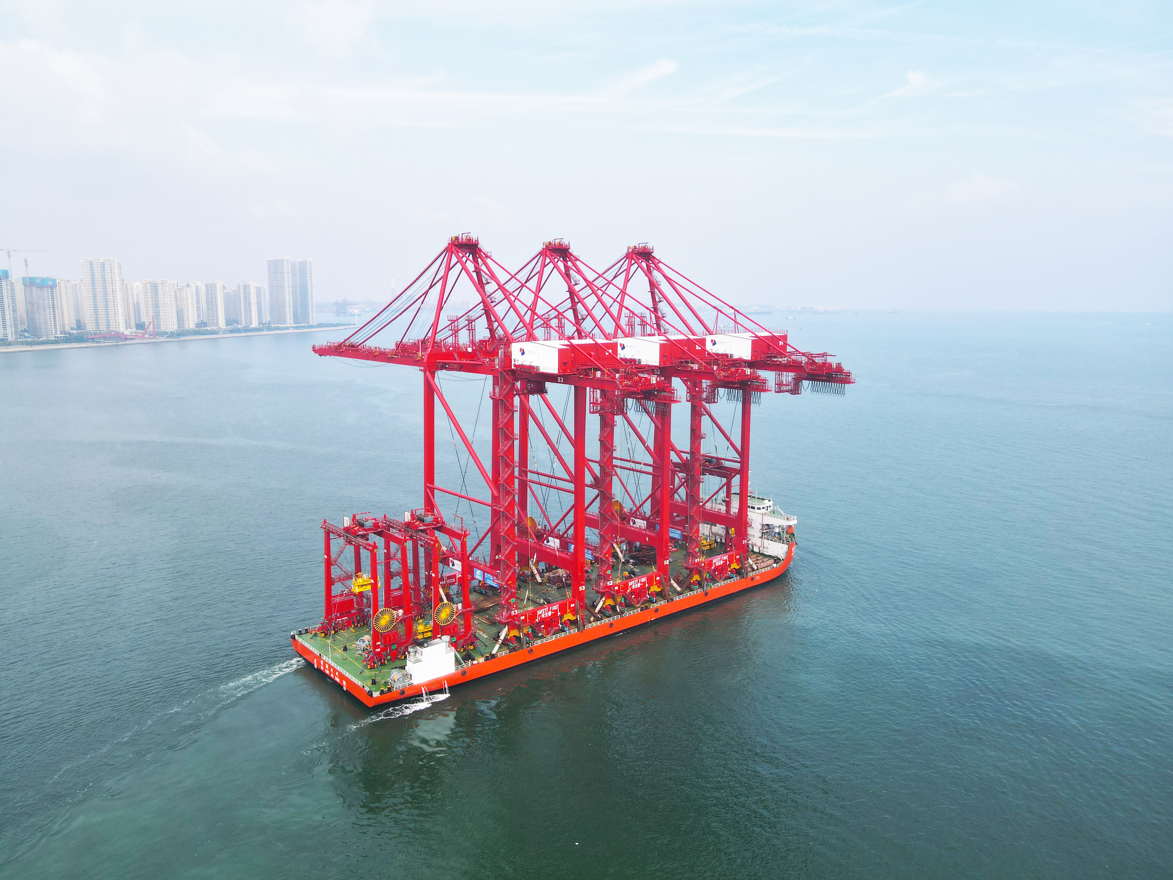 9月2日,中國船舶集團(tuán)旗下武漢船機(jī)海西重機(jī)公司為深圳大鏟灣現(xiàn)代港口發(fā)展有限公司建造的3臺65t-73m岸橋和3臺41t-23m輪胎吊發(fā)運。