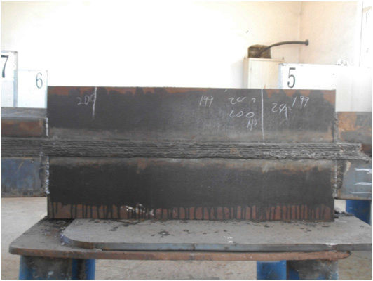 因齒條的鋼材材質(zhì)是經(jīng)過(guò)調(diào)質(zhì)處理的高強(qiáng)鋼,焊接工藝要求非常嚴(yán)格,每天清晨6點(diǎn)鐘就要開(kāi)始預(yù)熱,經(jīng)過(guò)3小時(shí)的加熱、保溫才能施焊,一天焊完后晚上還要進(jìn)行3個(gè)小時(shí)的熱處理。經(jīng)過(guò)10多天的日夜奮戰(zhàn),厚114mm、長(zhǎng)800mm的兩塊試板“一次焊接工藝評(píng)定”和“補(bǔ)焊工藝評(píng)定”均一次性順利通過(guò),并得到了美國(guó)ABS船級(jí)社船檢師的高度贊揚(yáng)。此兩項(xiàng)工藝評(píng)定的順利通過(guò),為F3項(xiàng)目后期最困難、要求也最高的齒條焊接奠定了堅(jiān)實(shí)的基礎(chǔ),鋪平了道路。