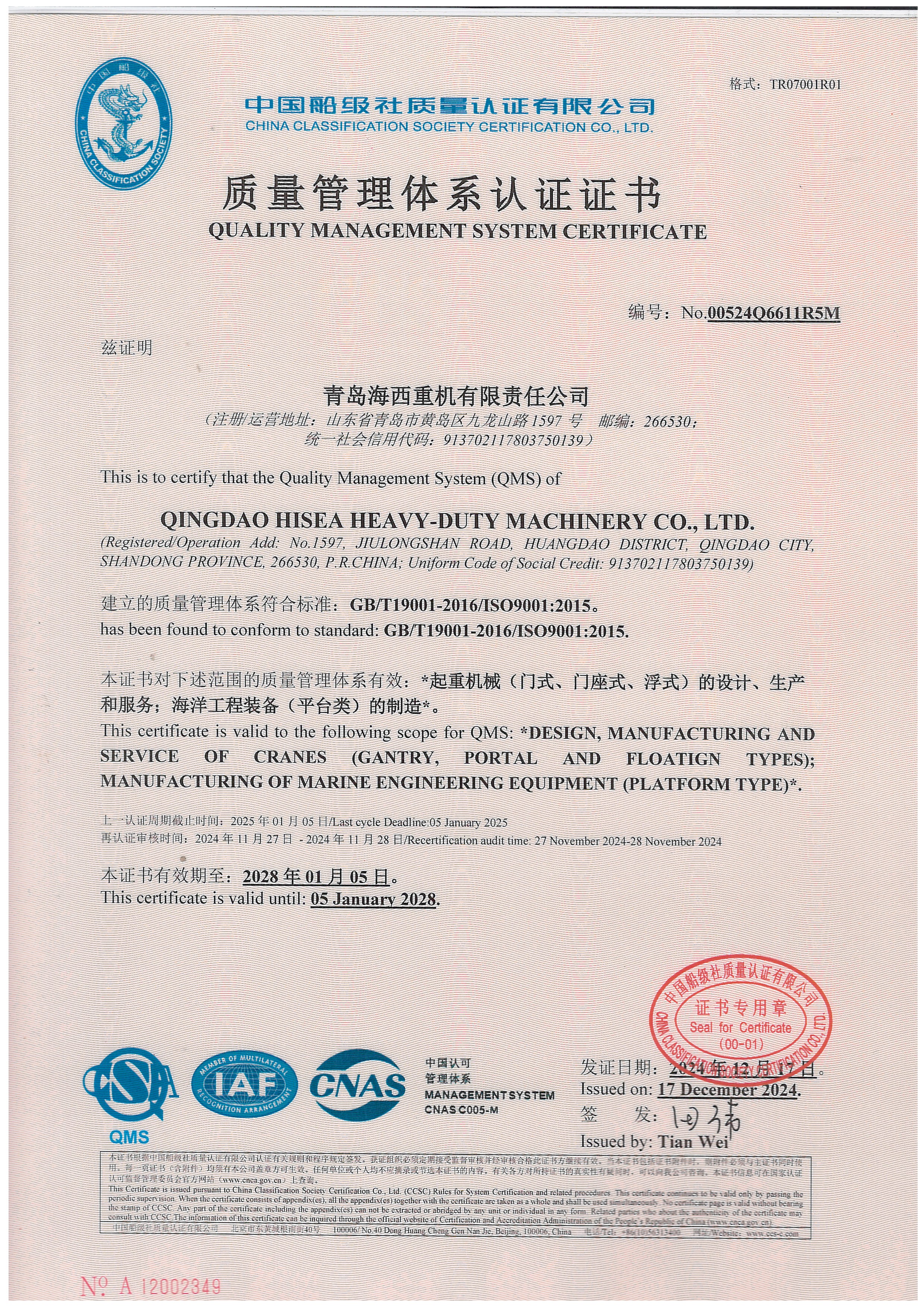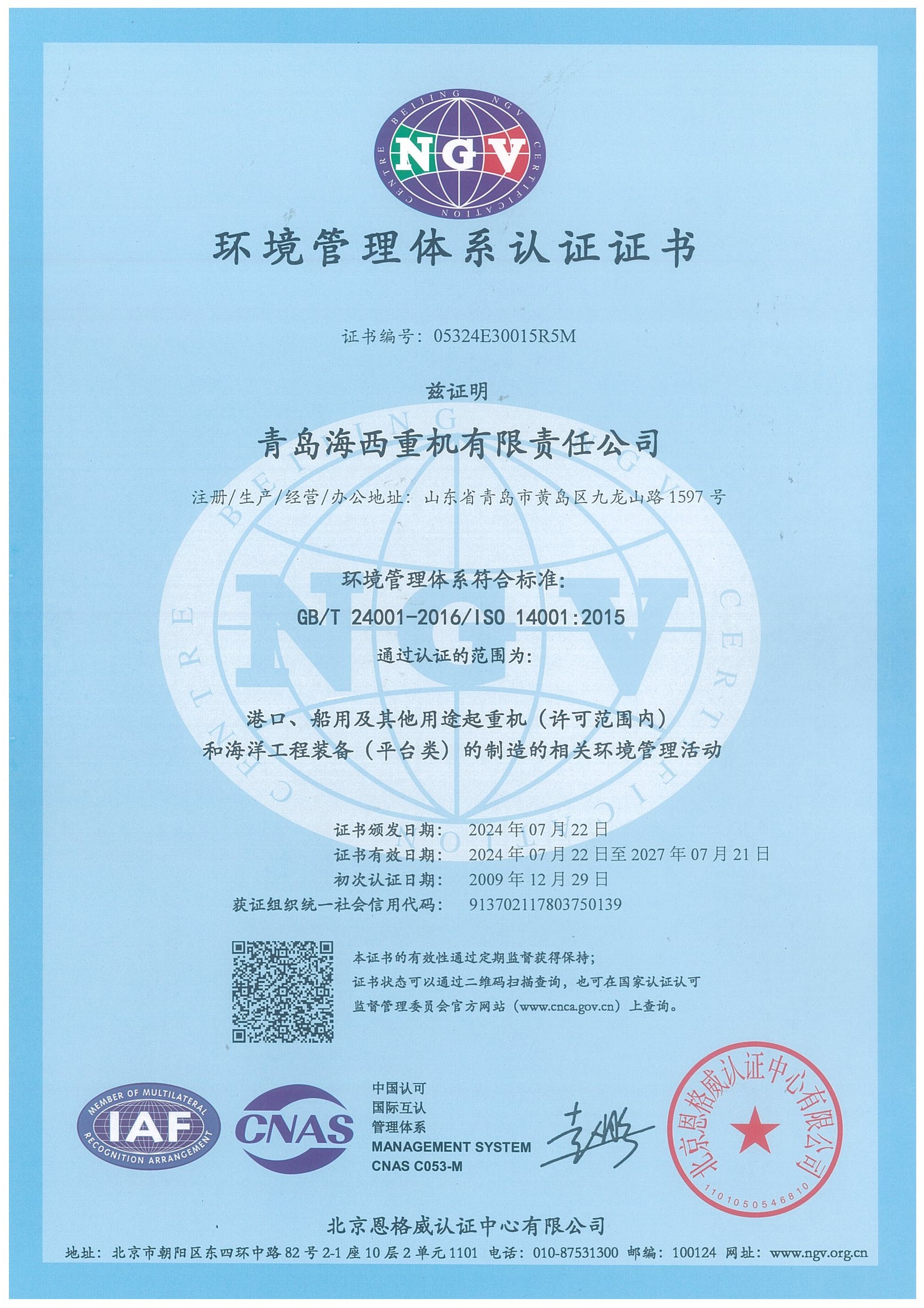 環(huán)境管理體系證書