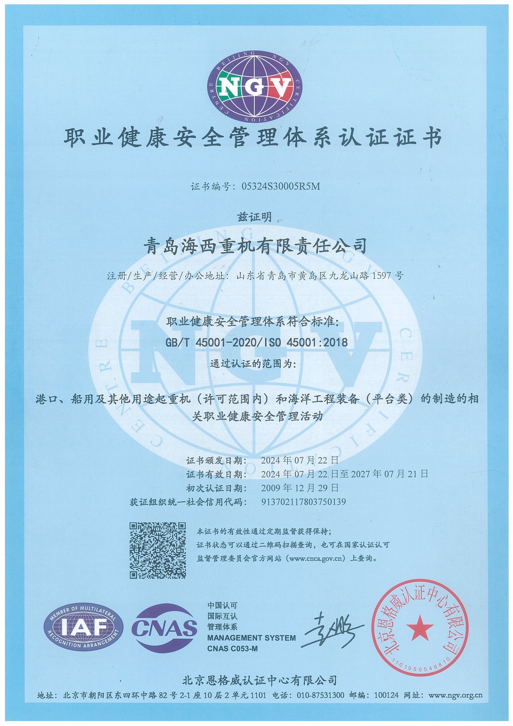 職業(yè)健康安全證書