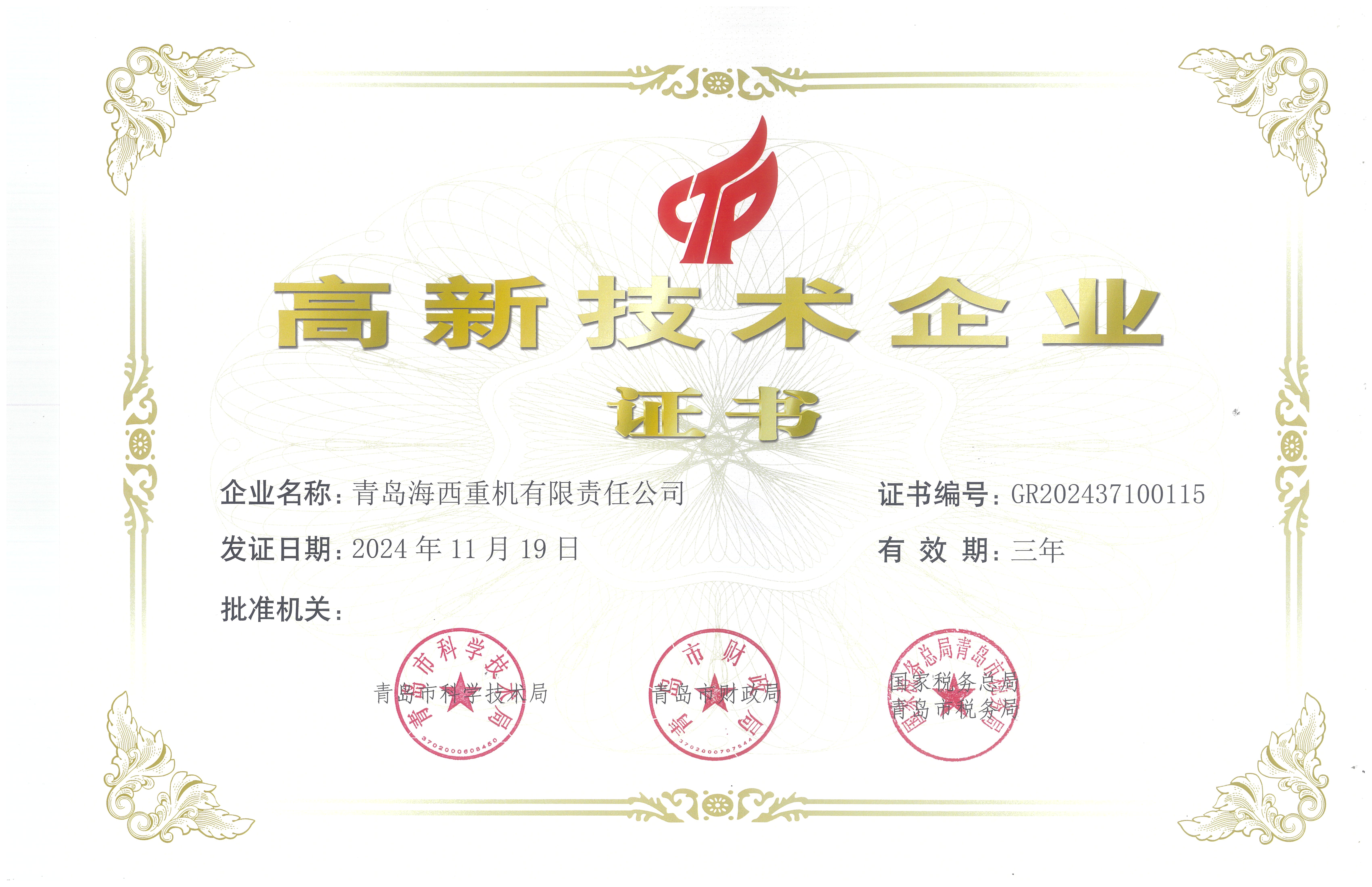 高新技術企業(yè)證書
