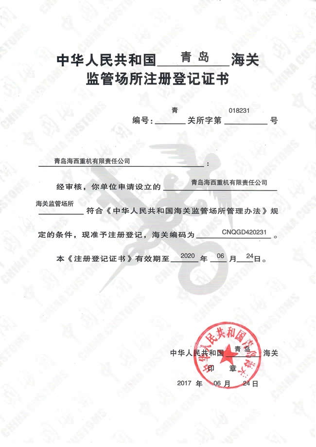 海關監(jiān)管場所批復